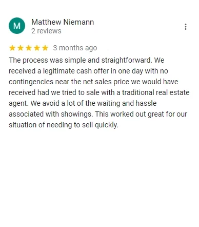 What’s the secret to selling your home quickly? Cash. Rather than having to wait for a mortgage (which can take up to 45 days), you can just get a cash transaction immediately from us. We buy houses using cash we already have on hand, so you don’t need to wait for a bank.