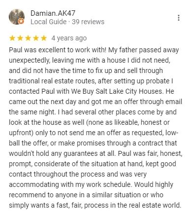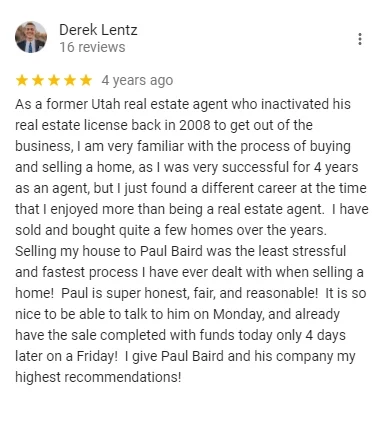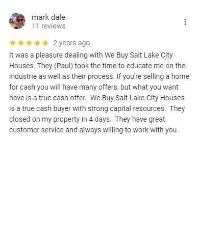 “We Buy Salt Lake City Houses is a true cash buyer with strong capital resources. They closed on my property in 4 days.”